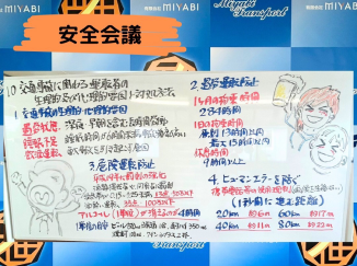 その為に、安全運転に対する管理体制の強化ならびに、安全意識の向上、安全運転の為の労働環境整備に日々取り組んでおります。